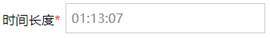 录像类电子档案持续时间的数量,以小时、分、秒为计量单位,例如:“01:13:07” |