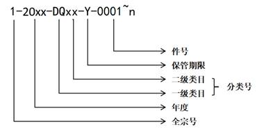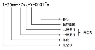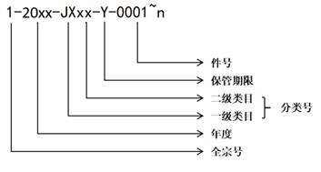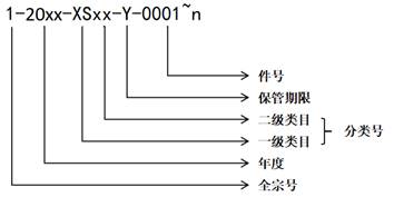 全宗号-档案门类代码·年度-保管期限代码-件号