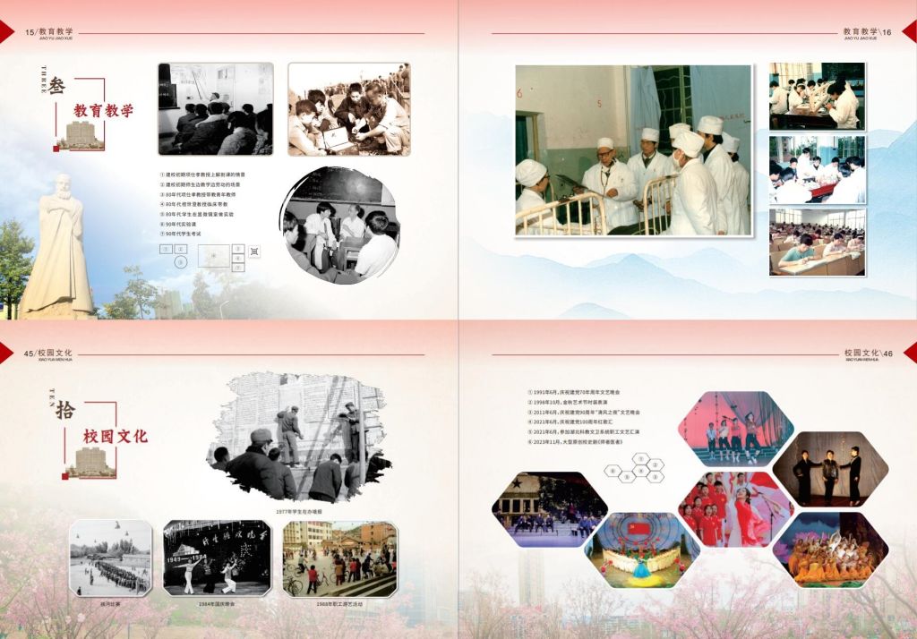 档案馆、校史馆编印的图片集共60个P,全彩铜版纸印刷,集中展示了从馆藏照片档案中精心挑选出的220多幅新旧照片,从历史沿革、基础设施、教育教学、学科科研等十四个方面,以时间为序,通过新旧对比,用一幅幅将瞬间凝为永恒的照片,记录和见证了湖医药艰苦创业、砥砺奋进的光辉历程和取得的辉煌成就。照片档案是真实的历史记录,是重要的信息资源,是宝贵的文化财富,通过图片集中展示的形式让师生员工更加了解学校的发展历程。