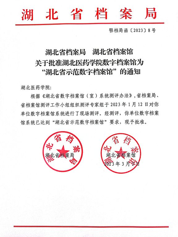 2023年04月06日我校数字档案馆高分获批“湖北省示范数字档案馆”